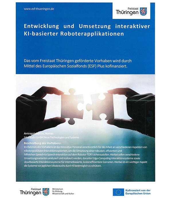 Im Rahmen des Vorhabens sollen für die bestehenden Produkte TORY und CARY Verkaufskonzeptionen erarbeitet werden, die sich an den Zielgruppen orientieren. Zu den Aufgaben der geförderten Person werden unter anderem die Aufgaben Analyse von Kundenbedürfnissen (aus Support/Service) sowie der Aufbau eines zielgruppenspezifischen Kommunikationssystems gehören.Gefördert durch den Freistaat Thüringen aus Mitteln des Europäischen Sozialfonds Plus.